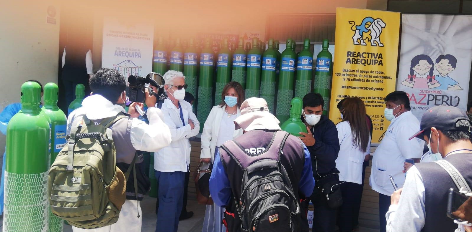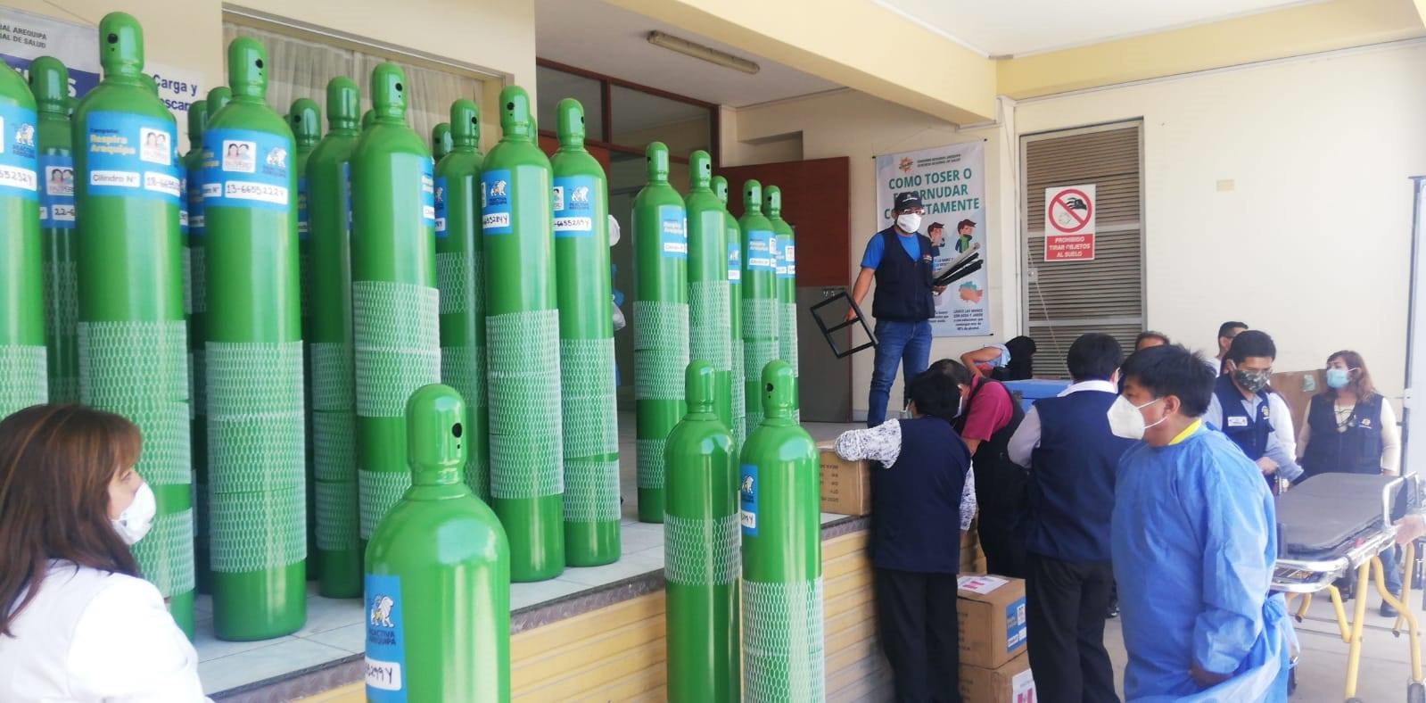 Con fecha 23 de setiembre, se hizo la primera entrega de oxímetros a la Gerencia Regional de Salud; así mismo, el día de hoy, se entregó a la Gerencia Regional de Salud y a la Red de Salud Arequipa-Caylloma, 76 cilindros de oxígeno, los mismos que serán distribuidos a los diferentes Centros de Salud de Arequipa.