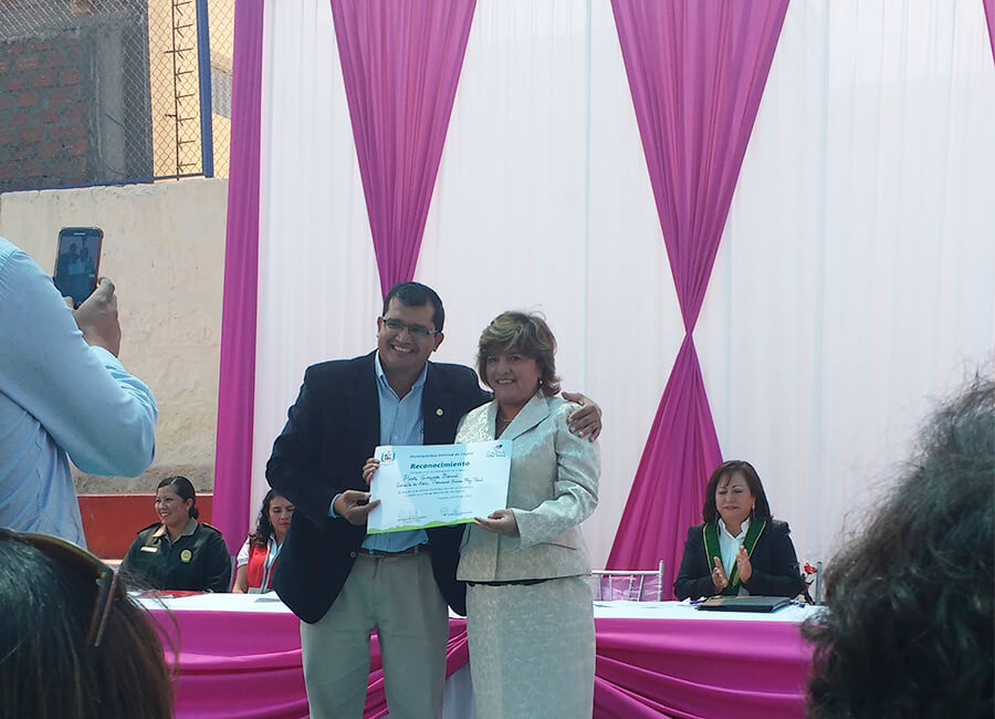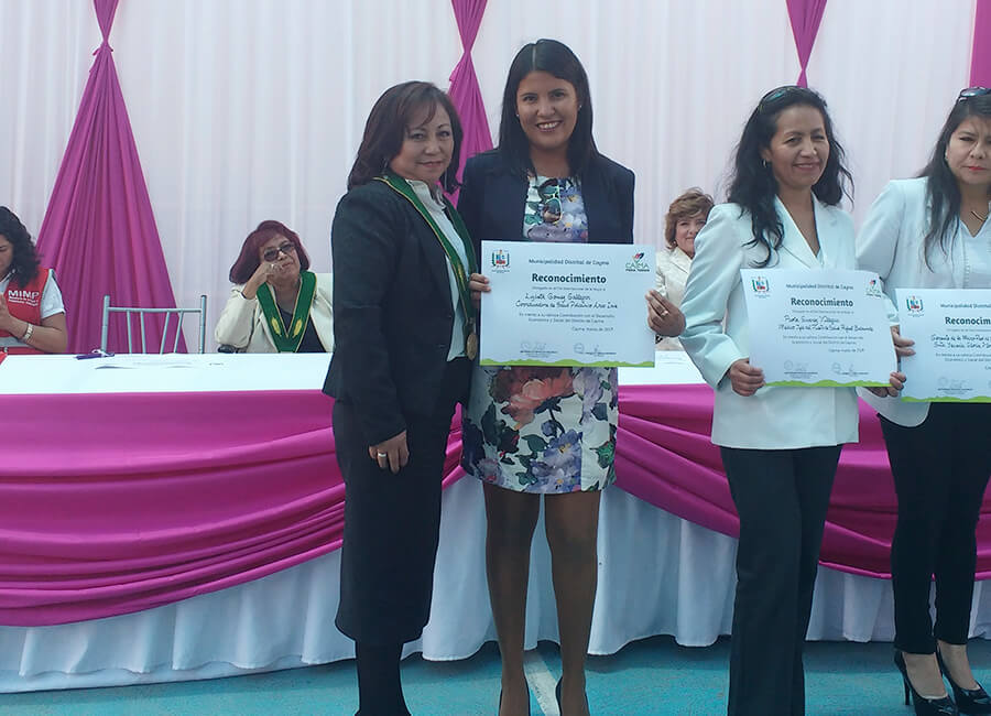 Por el día Internacional de la Mujer, la Gerente General de la Asociación Paz Perú, Paola Gonzáles Bernal, recibió un reconocimiento por parte de la Municipalidad de Cayma en mención a su gran labor contribuyendo al desarrollo económico y social en este distrito.